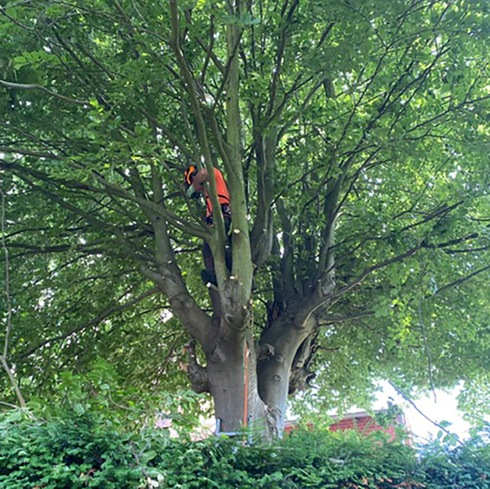 Beim Lichtraumprofilschnitt werden Äste zurückgeschnitten, die in Straßen, Wege oder Gebäude hineinragen. So bleibt der vorgeschriebene Lichtraum für Fahrzeuge und Fußgänger frei.